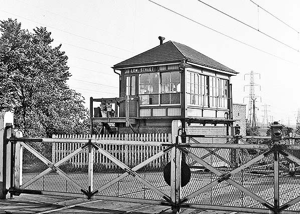 ![]() Low Street signal box in the 1960s. This is not the original box but a replacement provided by the Midland Railway in January 1925. Photo from John Mann collection ![]() Low Street station seen from a passing eastbound train circa mid 1960s. The station is now very well lit. 11 new electric lights, each illuminated with the station name, stand on the up platform. Presumably a similar number stand on the down platform.