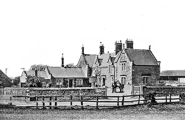 ![]() ![]() ![]() This and the picture above are the only photographs discovered so far which depict Lucker station while it was open, and this is on a postcard sent in July 1908. The forecourt of the station is shown clearly, with the substantial station building in the ‘Jacobethan’ style dominating the scene. Its smooth, coursed stonework, decorated gables and tall chimneystacks can be enjoyed. The single-storey sections at right angles to the two-storey structure are more in keeping with vernacular cottage architecture. The presence of a horse and awkwardly loaded cart, attended by a cloth-capped man, seems to have attracted some onlookers. The stone-built waiting shed on the up platform is visible on the right; it has been closed in with timber and glass by the North Eastern Railway.