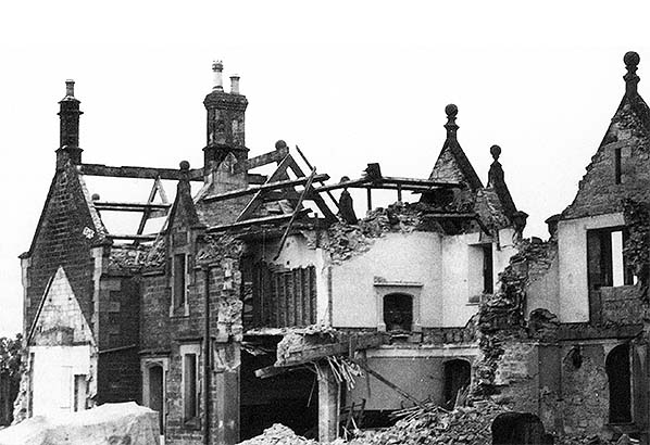 Photo by Ken Hoole / NERA ![]() Demolition of the fine station building at Lucker is under way in July 1960. This view is northward from the station forecourt. The single-storey section has already been removed: its imprint can