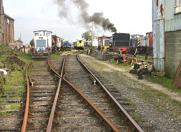 ![]() Fullstow No, 2 (on the right) prepares to haul the first passenger train out of Ludborough on an open day in June 2006. Two Fowler shunters are seen to its right awaiting repair. Photo by Nick Catford
