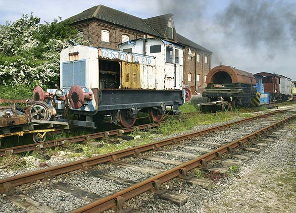 Diesel shunter at Ludborough in June 2006. The goods shed is seen in the background.
