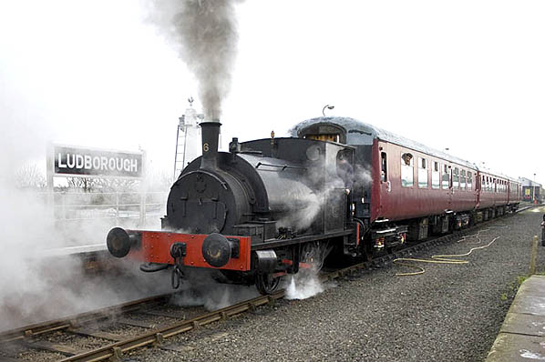 0-4-0 Saddle tank on loan from the Foxfield Railway prepares to leave Ludborough in December 2007