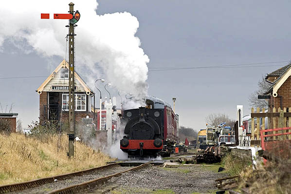 0-4-0 Saddle tank on loan from the Foxfield Railway keaving Ludborough in December 2007