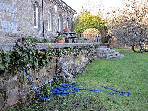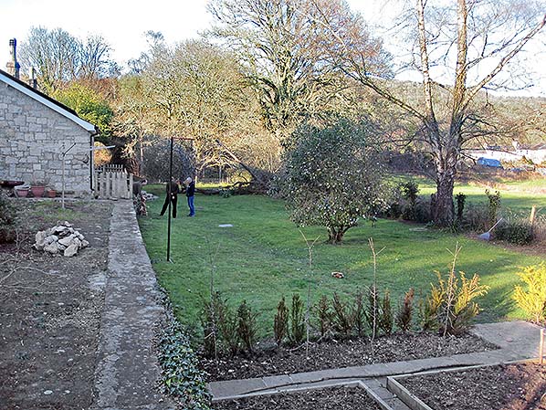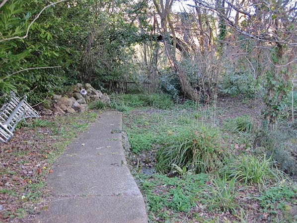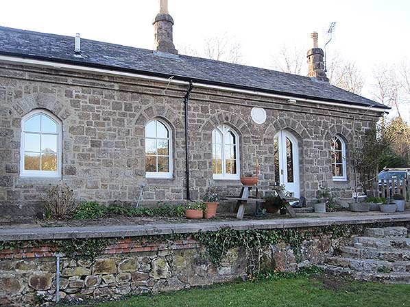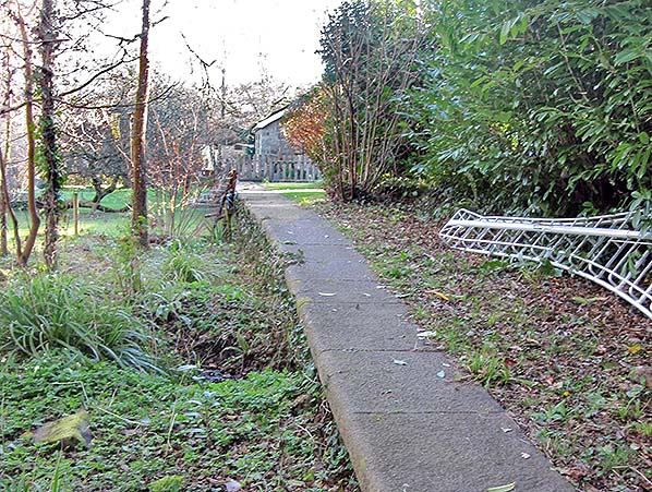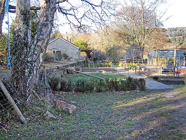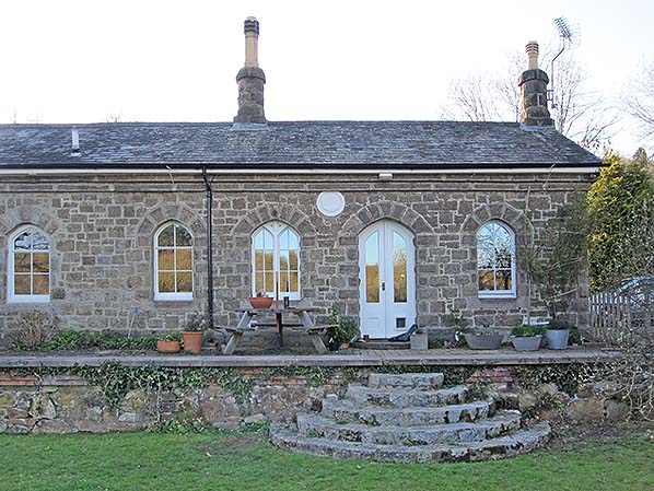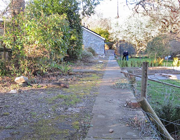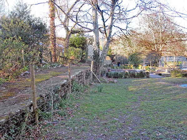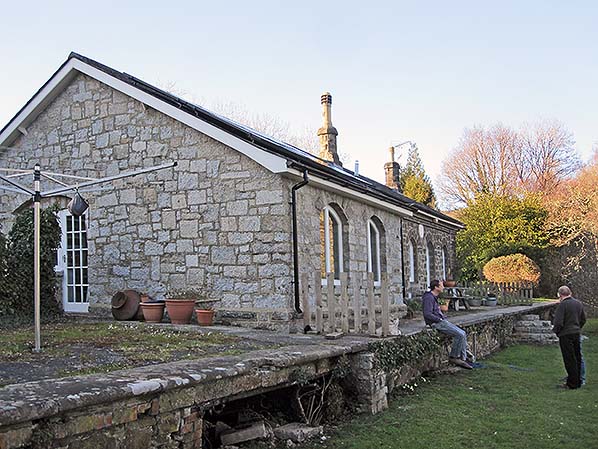 Lustleigh station looking north in 2016. The wide strip of land opposite the platorm was for the loop line that was never provided.