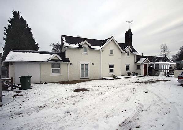 Luton Hoo station forecourt in December 2010. The left half of the building is new: compare with the picture below taken in 1984.