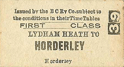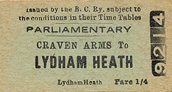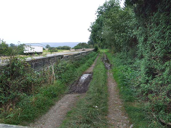 ![]() Looking south-east from the road towards the site of Lydham Heath station in September 2009. The platform was on the right, the goods yard was behind the wall on the left.