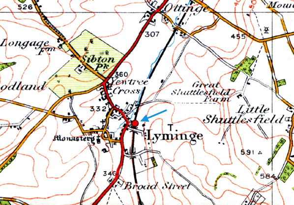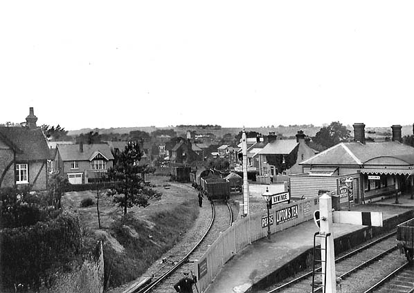 Lyminge was the largest village and the busiest passenger station on the line, and the station was well sited in the centre of the village. In the year ending September 1940 (the only year for which figures survive) 16,548 passenger tickets were issued (compared with 4,946 at all the other stations combined) and 7,438 were collected. 646 parcels were sent and 2,129 were received. 38 tons of general merchandise were received - which is a lot more than at any other station on the line - and 231 tons dispatched. Livestock traffic at the old horse dock was negligible: six horses accounted for the entire year’s traffic. This does not, however, take account of traffic from the livestock market, with its own dock south of the station. Lyminge still handled considerable quantities of both coal and milk with 1,807 tons of coal being received and 2,747 cans of milk; in addition 312 cans of milk were dispatched.