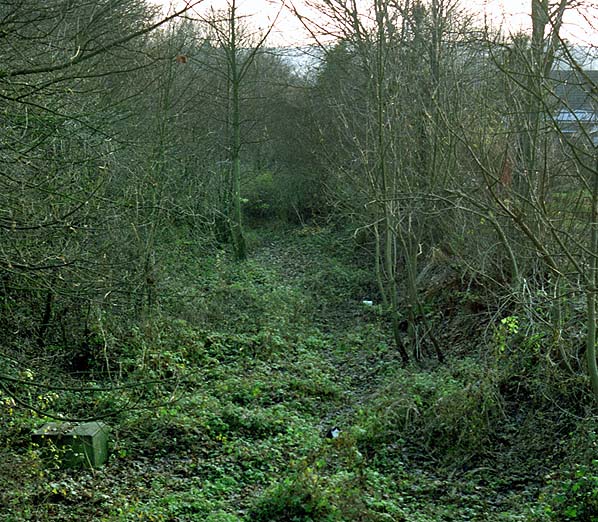 Lyminge station looking south from Nash Hill bridge in December 1991.