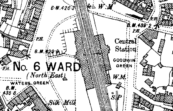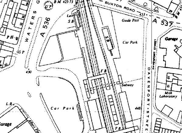 The down line platform (Marple direction) was reached from Waters Green and the up (Stoke direction) from Goodwin Green. A subway provided access between the platforms.