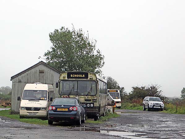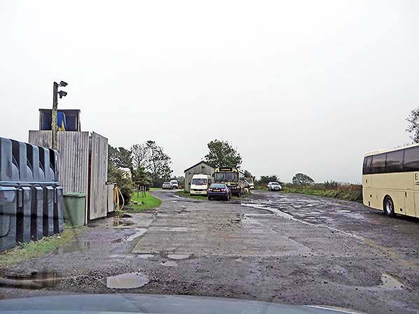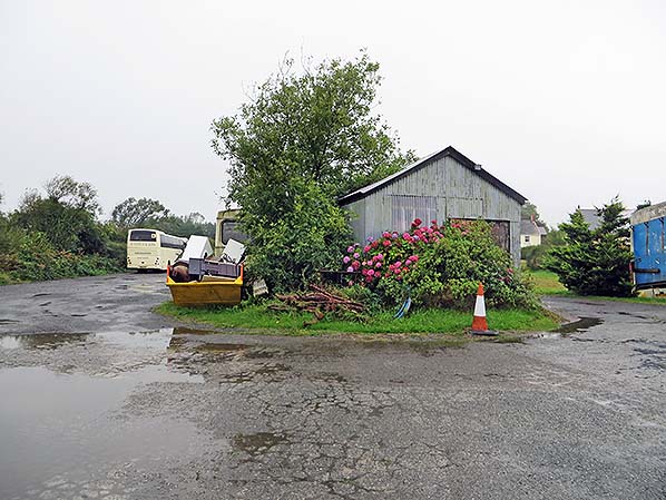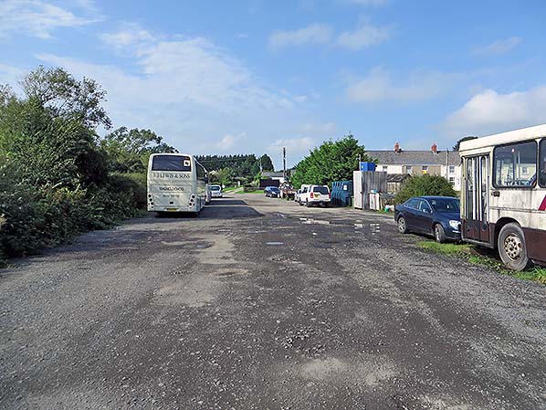Photo by Ben Brooksbank ![]() ![]() ![]() Looking north-east from the site of Maenclochog station towards the level crossing in September 2016. The goods shed is behind the bus on the right. The four houses on the right are Station Terrace. No 3 Station Terrace is the office for EJ Lewis and Sons.