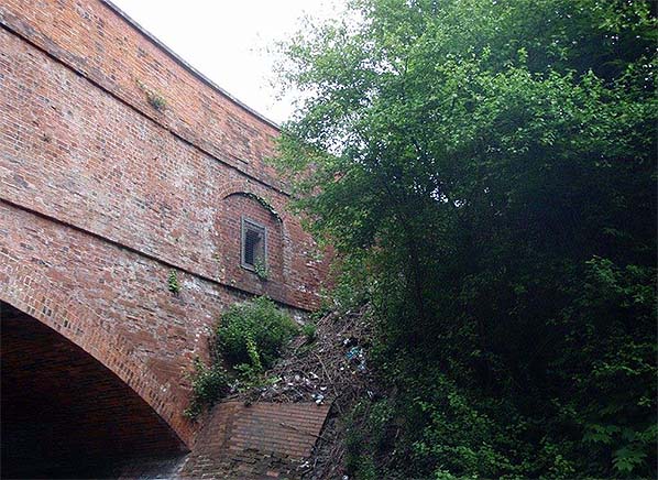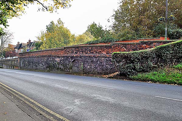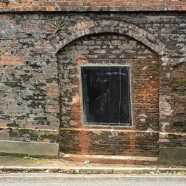 The brick bridge is unusual being two parallel bridges at different levels. The lower level is used for road vehicles and the higher level which has the arches in the side is used for pedestrians. There are also arches on the railway side of the bridge. It is said that steps led from the arches to the platform but there are two arches, one on either side of the line, and only one platform.