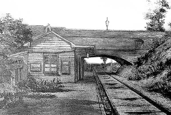 The first Maidenhead station (sometimes referred to as Maidenhead Riverside) opened with the first stage of the line on 4 June 1838. It was located a mile from the town centre and west of the Dumb Bell skew bridge over the Bath Road. The location was chosen to provide easy interchange between the railway and the busy coach route between London and the West Country and it was quickly well used for that purpose. Brunel's Maidenhead Bridge over the Thames although completed in 1838 did not come into use until July 1939, so for its first year Maidenhead was a temporary terminus. The GWR quickly realised that the station was too far from the town centre and and, in August 1838, it was planned to construct a new station closer to the town as soon as the line had been extended. This didn't however happen until 1871 and in the meantime, the Wycombe Railway opened its own Maidenhead station much closer to the town centre. The GWR's Maidenhead station was renamed Maidenhead and Taplow in August 1854.