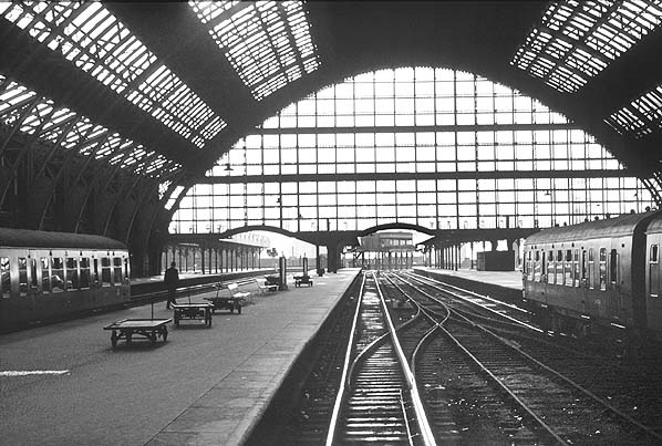 Inside the trainshed at Manchester Central in 1969 showing two DMUs waiting to depart. By this time with closure looming, only local services to Chester and Liverpool remained'