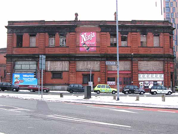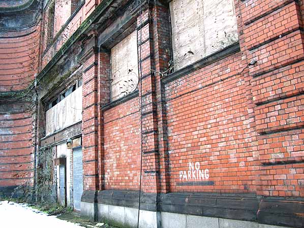 Photo by Mark Aldred ![]() The ancillary building that was located at the east end of Manchester Mayfield stations platform 1. The view is looking north in January 2010. Photo by Mark Aldred ![]() Looking west in January 2010 along platform 1 at Manchester Mayfield. Photo by Mark Aldred ![]() A January 2010 close up view of the Manchester Mayfield station building at street level.