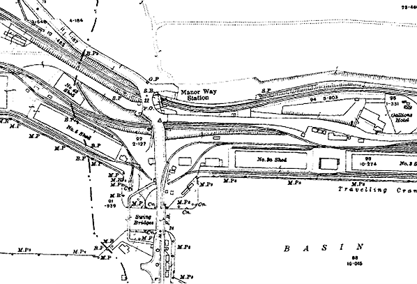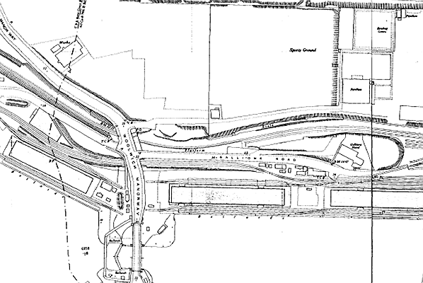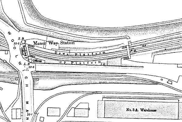 level position gave the signalman a clear view of the track on the west side of the bridge. There was a footbridge at the east end of the station, this appears to have been removed in the early years of the 20th century.