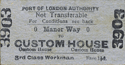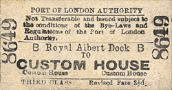 Tickets from J E Connor except 7242 Michael Stewart. Tickets for the four stations on the Gallions branch are sometimes shown as Royal Albert Dock with a letter to indicate which station. A was Gallions, B was Manor Way, D was Central and E was Connaught Road.