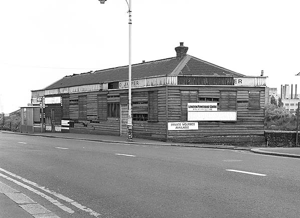 Manor Way Station street level building in September 1979. Compare this to the 1974 picture, the building is deteriorating. Photo by Nick Catford