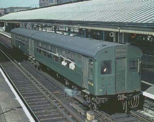 An ex LNER unit of 1937-8 is seen pausing at Manors East in 1962