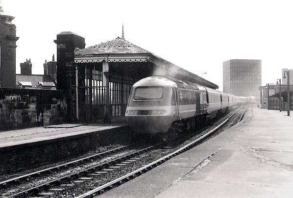 A HST passes through the southbound platform at Manors East in 1984
