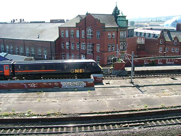 An express from London passes the original island platform at Manors East in July 2005. Photo by Mike Brady