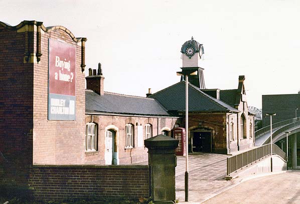 Manors (North) frontage, looking south across the forecourt in March 1978. Although Manors North had closed the entrance remained in use for access to the Manors East platforms.. The entrance is ahead, immediately to the right of the telephone box. This led to the booking hall with ticket windows on the left, and the subway to platform 2 ahead.