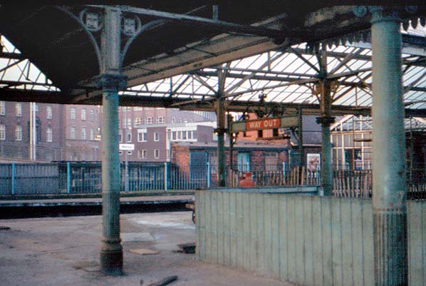 Manors (North) platform 1 seen from the south end of platforms 2 and 6 in November 1979.