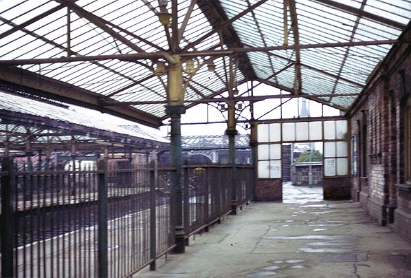 Manors (North) platform 1 looking south. This is the route from the main entrance to the footbridge to reach platforms 6 to 9.