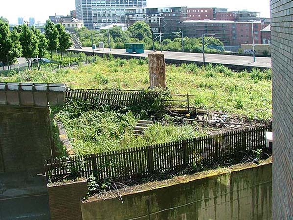 Looking east over the entrance to Trafalgar Street underbridge and across the southern end of Manors North’s site towards Manors (East). Photo by Mike Brady