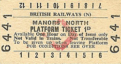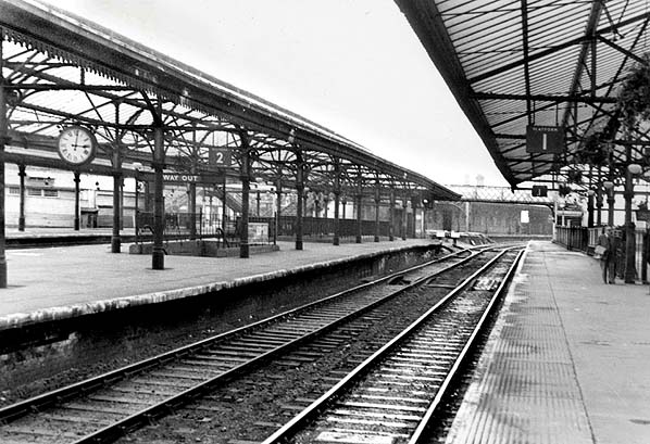 Manors (North) looking south from platform 1 in June 1969. LNER lamps and nameplates are still in place. Photo by John Mann
