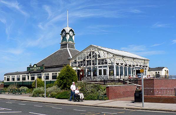 The clock cupola from the Manors North entrance building survives, but it is in South Shields as a feature of the Rattler pub (formerly Marsden Rattler) seen here in August 2005. From Photographs of Newcastle upon Tyne and North East England web site