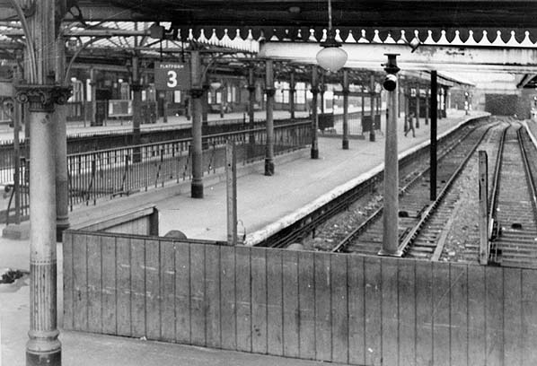 Manors (North) Bay platforms 3 and 4, looking north, still with tracks in June 1969. Platforms 2 and 1 are to the left.