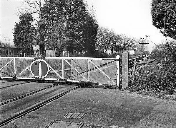 Looking towards Totton from Marchwood level crossing on 23 April 1978. Just visible on the right is one of the trap sidings and it appears to have a sand drag. The warning lights on the gates were still oil lit at this time; this made a total of twelve paraffin lamps to be attended to in the vicinity of