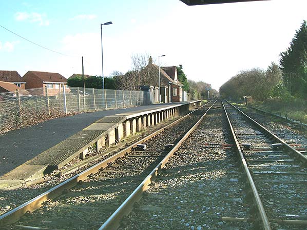 Marchwood station from the level crossing in January 2006. The new lighting and resurfaced platform may seem a little strange for what is a disused station insofar as passenger services are concerned. It will be for the benefit of the signalman who has to dart back and forth between his