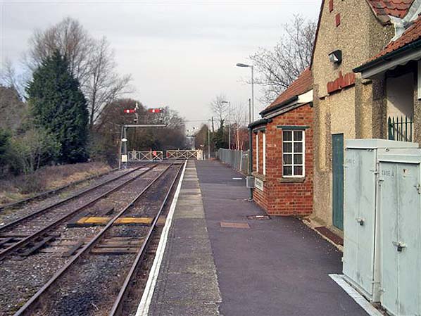 Looking north-west along Marchwood station platform in February 2006.