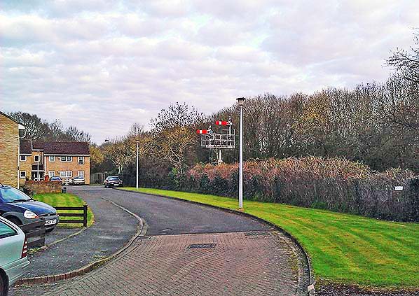 Looking south-east along Plantation Drive which follows the course of the siding into the goods yard in April 2013.