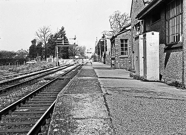 A quiet moment at Marchwood on an otherwise brisk 23 April 1978, the day of the Fawley Flyer' shuttle trains. The view is looking towards Totton. The Southern Railway nameboard was still in situ on the signal box at this time.