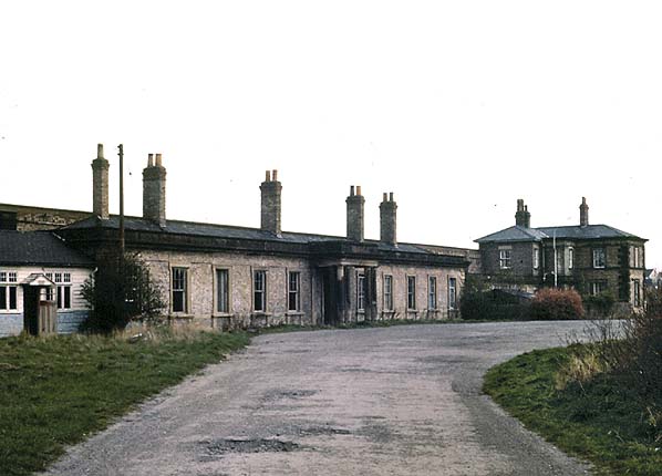 Market Weighton station forecourt in April 1976. The stationmaster's house is seen on the right with the timber refreshment room on the left.