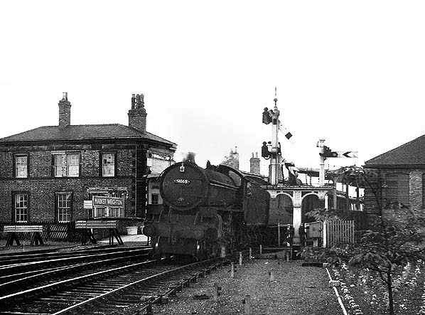 East bound train leaving Market Weighton c.1950s. 61068 is a Thompson B1 built in 1946 by the North British Loco Co, Glasgow. Withdrawn on 17.6.1963 from Ardsley shed (37A). It was cut up at Darlington Works in July of the same year. Photo