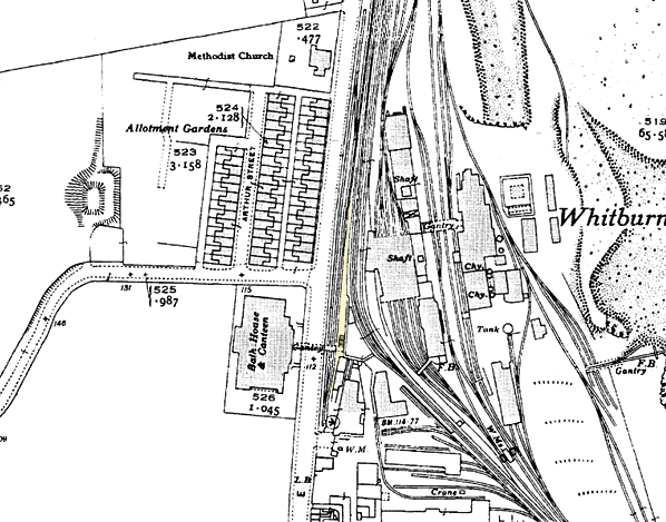 At an early date an engine shed was opened at Whitburn Colliery, its exact position is unknown, it was later replaced by a two road shed behind the station. This remained in use after closure to