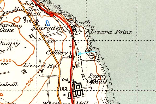 Before the colliery was built, Marsden was a very small village consisting of farms, a few cottages and a lighthouse at Souter Point, the only industry in the area was limestone quarrying which was on a small scale. The Whitburn Coal Co. bought five quarries, two of which were developed as the Lighthouse (Marsden) Quarries. The quarries lay next to the new railway and |