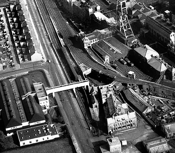 A covered concrete bridge crossed both the station and the adjacent road giving access to the pithead baths.
