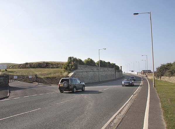 Extant abutment for the substantial skew bridge across the Coast Road. This is the only remaining feature of the Marsden Railway.