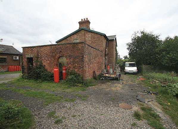 ![]() Masham station looking north along the down platform in September 2009. The entrance to the gents' toilet is behind the gas cylinders.