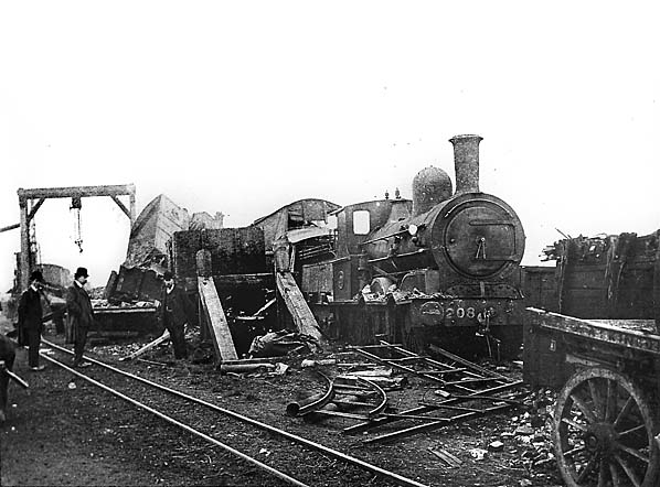 ![]() Accident in the transhipment yard in October 1908. The 2-foot gauge contractor's tramway