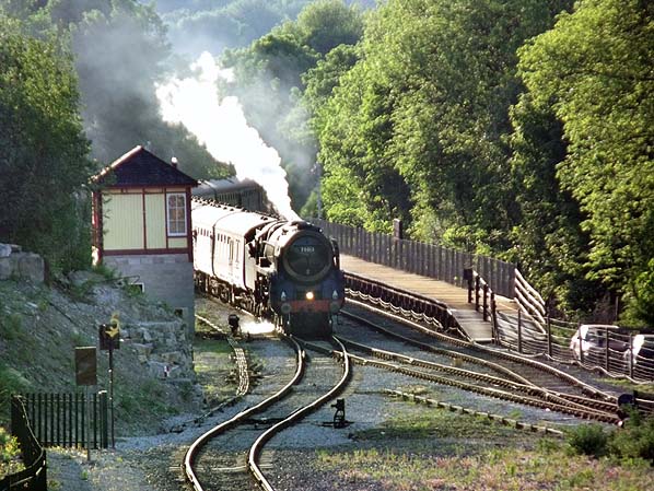 Starting from a base at Darley Dale station, Peak rail rebuilt the line south into Matlock in the early 1990s. It was hoped that the heritage line could be connected into Matlock station which had become the terminus of the British Rail line from Derby. Once again British Rail proved to be hostile to Peak Rail and they blocked the plan. Peak Rail were determined to run trains to Matlock so they looked at an alternative temporary solution. The 1987 halt at Cheedale had consisted of a timber built single platform. It was decided to move it to Matlock and erect it as a temporary station. A site was chosen a short distance to the north of Matlock station and it was decided to call the station Matlock Riverside. Matlock Riverside was built in 1991 and opened for passenger carrying services in the summer of 1992. The station is located on the east side of the line. The facilities are very basic consisting of a single platform. A single track with a run around loop continues for a short distance to the south of the station and ends at a set of buffers. Access to the station is via a public footpath from Matlock station a quarter of a mile away. Initially Matlock Riverside had a small hut that functioned as a ticket office. It was frequently damaged by local vandals so the station became permanently unstaffed and tickets had to be purchased aboard the train. Matlock Riverside was only ever supposed to be temporary the aim being to get Peak Rail trains into Matlock station as soon as possible. It took until 2009 for agreement to be reached with Matlock stations new owners Network Rail. Peak Rail extended into Matlock from 1st July 2011 Matlock Riverside closed the same day. The station remained in situ mothballed so that it could be used for future events. Eight and a half miles of the Matlock - Buxton line now forms the Monsal Trail starting at Coombs Road Viaduct, one mile southeast of Bakewell and finishing at the head of Chee Dale, about three miles east of Buxton. There is a diversion round the tunnels. Further reading: Railway from Buxton to Bakewell, Matlock and Ambergate (Scenes from the Past) by JM Bentley, 1992. Railways around Buxton by JM Bentley, 1987. Tickets from Michael Stewart, route map drawn by Alan Young To see other stations between Manchester Central & Matlock click on the station name: Manchester Central, Chorlton-cum-Hardy, Withington & West Didsbury, Didsbury, Heaton Mersey, Cheadle Heath, Hazel Grove (Midland), Buxworth, Chinley (2nd site) STILLOPEN, Chinley (1st site), Chapel-en-le-Frith Central, Peak Forest, Cheedale Halt, Buxton (Midland), Blackwell Mill Halt, Millers Dale, Monsal Dale, Great Longstone, Hassop, Bakewell, Rowsley (2nd site), Rowsley (1st site), Rowsley South PEAK RAIL, Darley Dale& Matlock STILL OPEN. See also Stockport Tiviot Dale & Stockport Portwood |