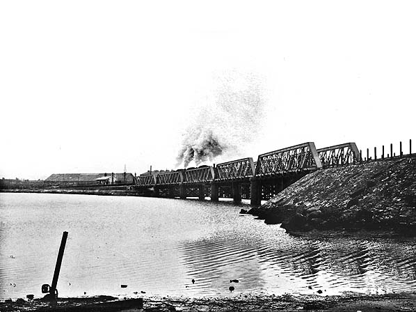 ![]() The new Backwater viaduct during the Board of Trade inspection on 3 February 1909. Three GWR 2-6-2 tanks and an 0-6-0 saddle tank ran over the viaduct together. Melcombe Regis station is