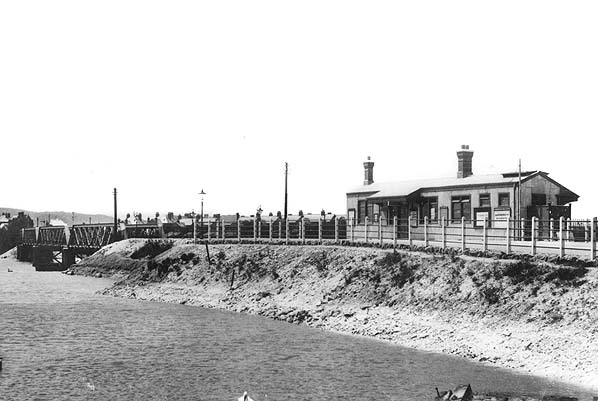 Melcombe Regis station built on land reclaimed from the Backwater c1909. The new Backwater viaduct is seen on the left.