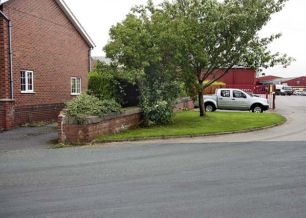 ![]() Melmerby loading dock in September 2009. It now forms a boundary wall along side the entrance to the road haulage depot that now occupies the site of the line and goods depot south of the Wath - Melmerby road.