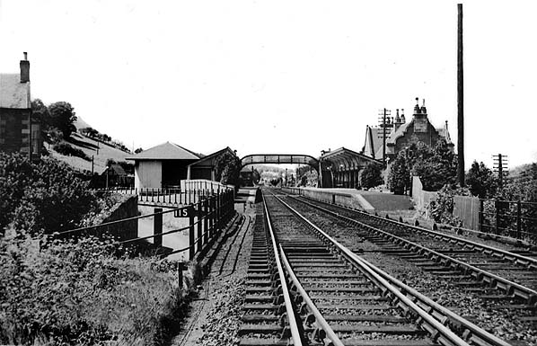![]() Looking west towards Melrose station in July 1952. The entrance to the goods yard and the goods shed are seen on the left, The building to the left of the goods shed is the weigh office.