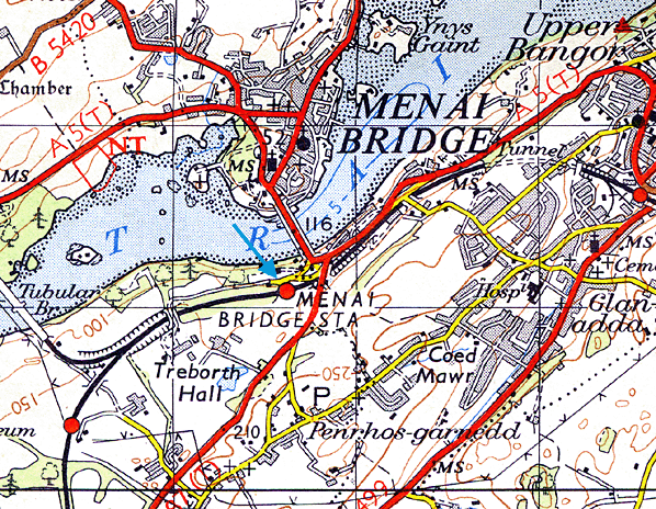 with the B&CR at Menai Bridge. This was the location where the Menai Suspension bridge, engineered by Thomas Telford, and forming part of the London and Holyhead turnpike road had opened on 30 January 1826.
